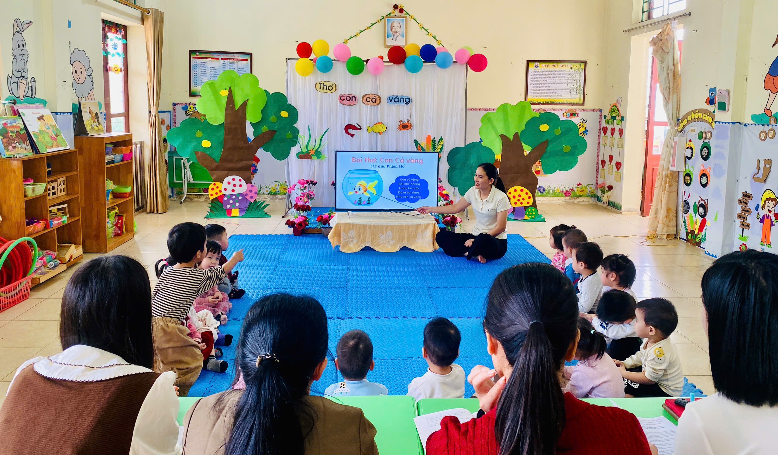 - Ngày 25/12/2025 tổ chuyên môn trường mầm non Thượng Hoà đã tổ chức thành công buổi SHCM theo nghiên cứu bài học! 🍁🍁Tại buổi sinh hoạt, các giáo viên trong nhà trường được tham dự các hoạt động giáo dục thuộc lĩnh vực phát triển ngôn ngữ của 2 độ tuổi trong nhà trường: + HĐ1: Dạy trẻ đọc thơ ” Con cá vàng”- Độ tuổi: 24-36 tháng tuổi do giáo viên Đỗ Thị Xuyến thực hiện. + HĐ2: Kể chuyện cho trẻ nghe” Người làm vườn và các con trai”- Độ tuổi : 4-5 tuổi do giáo viên Nguyễn Thị Ngân thực hiện. 🌟🌟Qua buổi sinh hoạt, giáo viên đã nâng cao nhận thức về tầm quan trọng của việc phát triển ngôn ngữ cho trẻ. 🌼 Sau đây là một số hình ảnh tại buổi sinh hoạt: