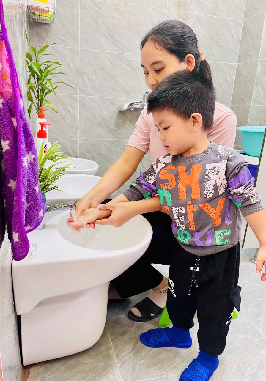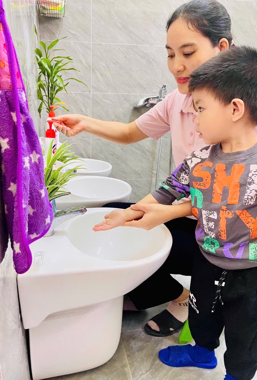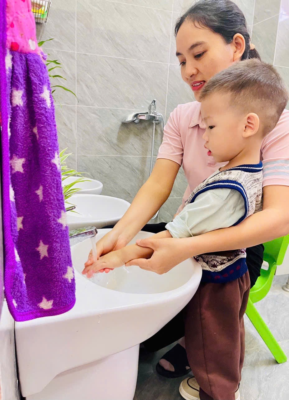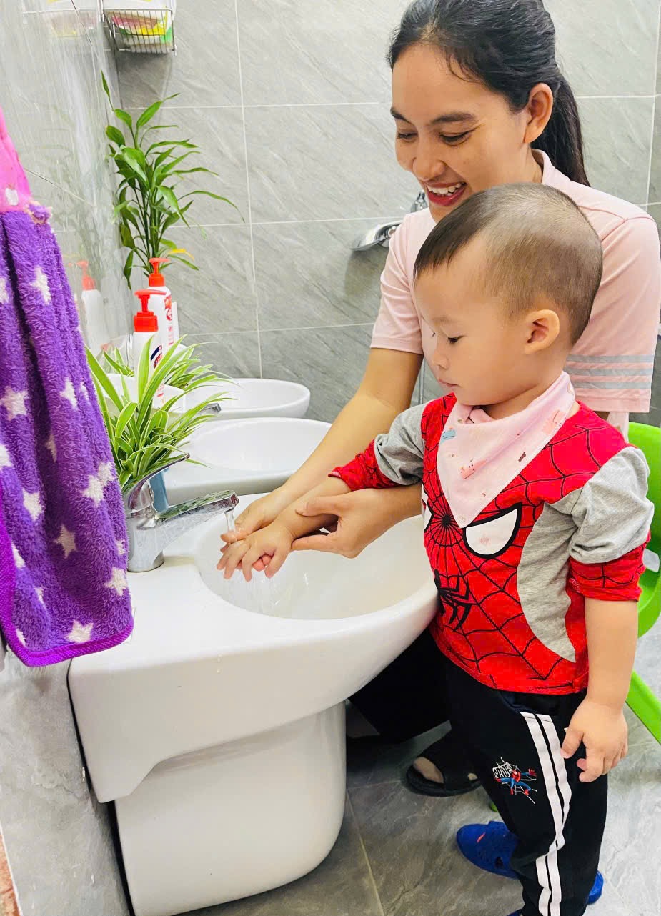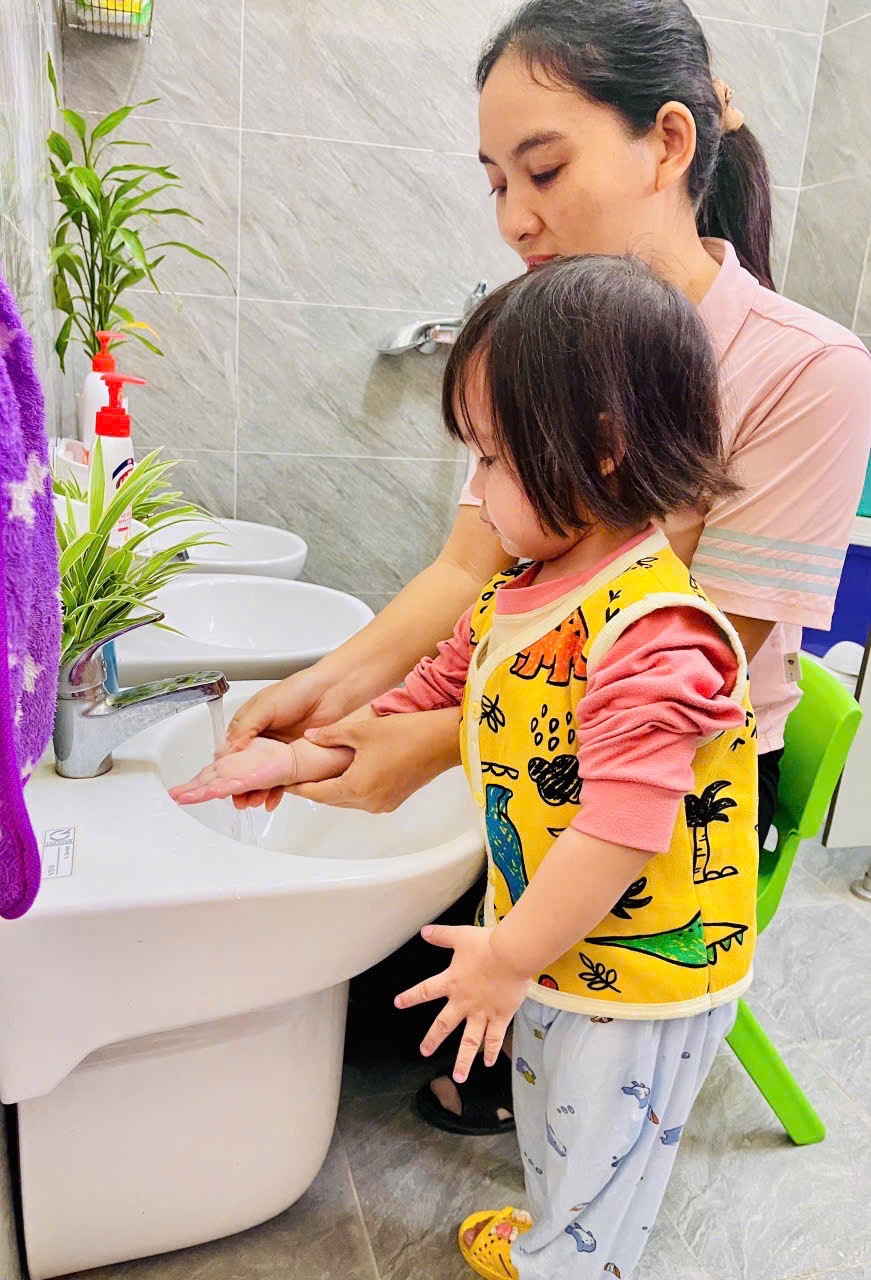 👏 Rửa Tay Sạch Sẽ – Cả Ngày Vui Vẻ 🙌 🌻Thông qua hoạt động 👏rửa tay: 👉 Bé biết được thời điểm nào mình nên rửa tay 👉Bé hiểu được ý nghĩa của việc rửa tay 👉 Tạo cho trẻ có thói quen vệ sinh cá nhân tốt 💕Sau mỗi hoạt động ngoài trời, trước bữa ăn, sau bữa ăn các con đều có thói quen rửa tay. Việc rửa tay giúp trẻ hình thành thói quen vệ sinh an toàn cá nhân và phòng tránh các dịch bệnh dễ lây truyền qua đường tiếp xúc. 📸Ba mẹ hãy ngắm nhìn các bé lớp 2TB cùng nhau vệ sinh tay mỗi ngày nhé!!!