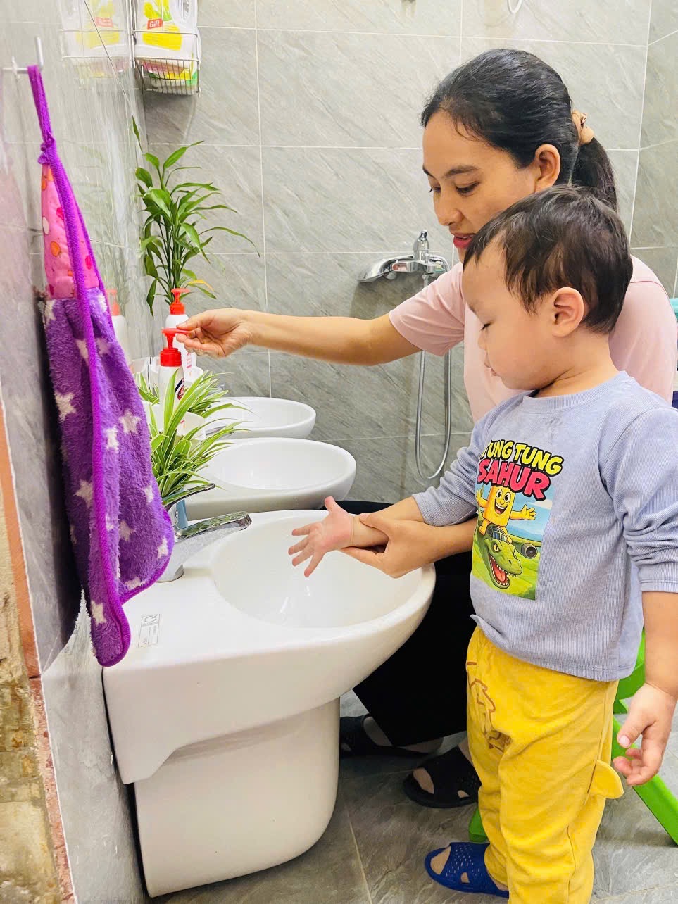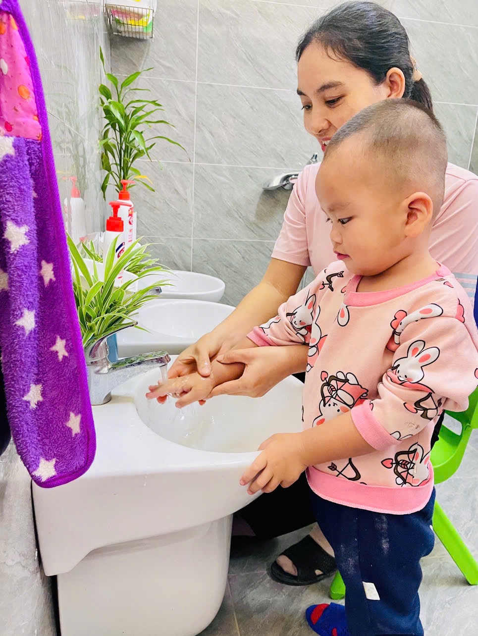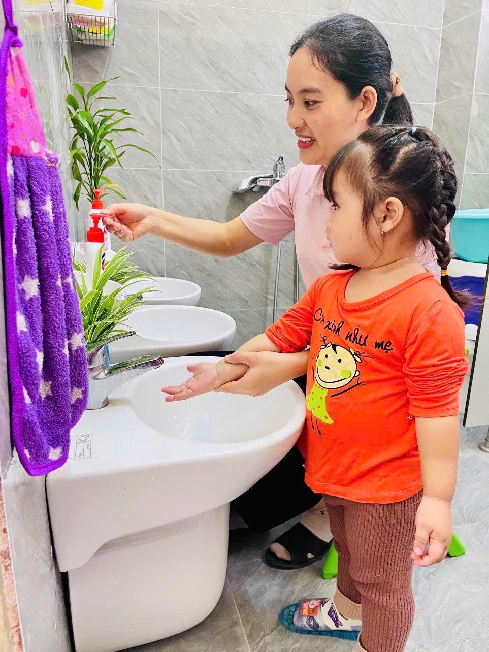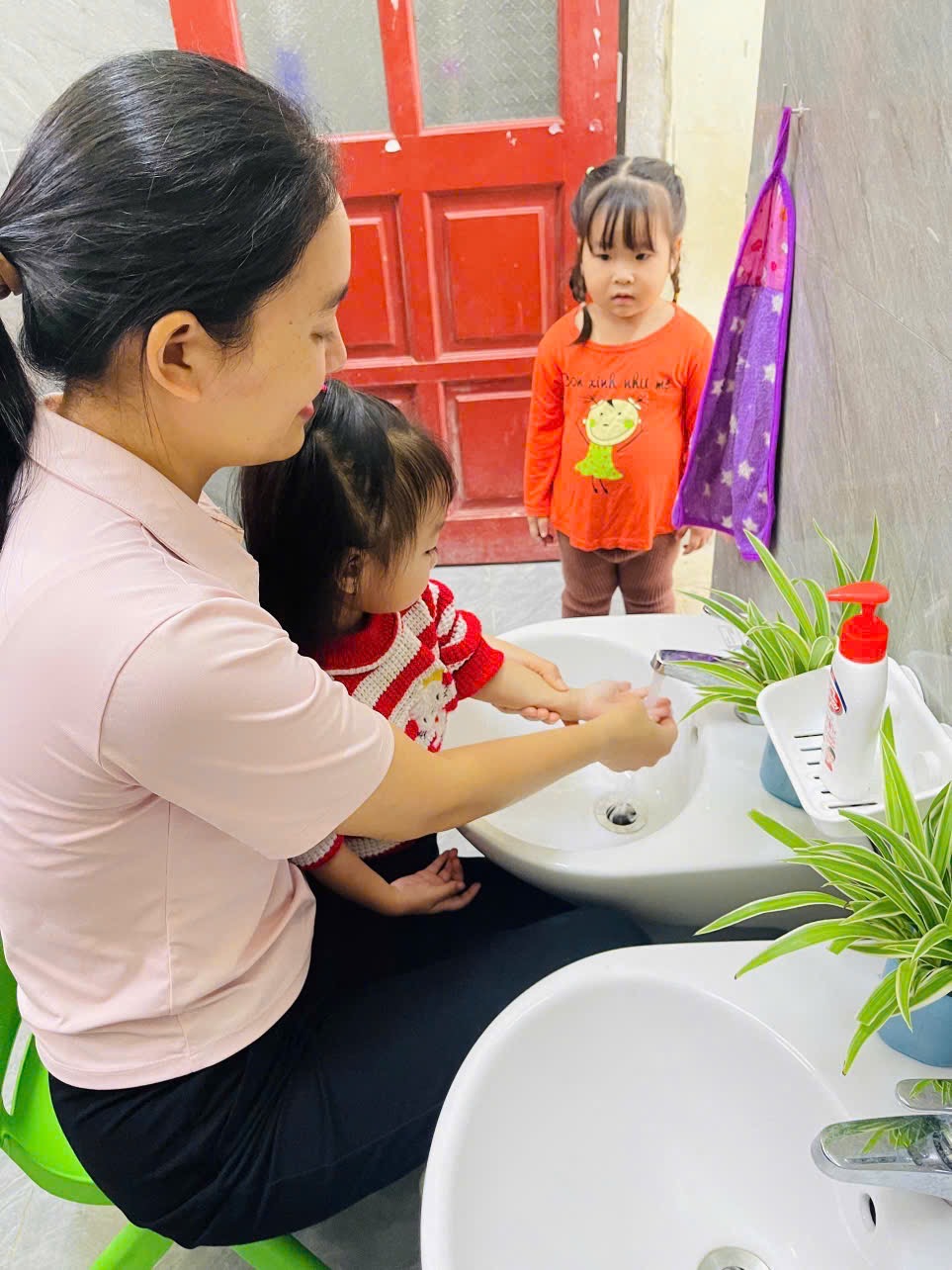 👏 Rửa Tay Sạch Sẽ – Cả Ngày Vui Vẻ 🙌 🌻Thông qua hoạt động 👏rửa tay: 👉 Bé biết được thời điểm nào mình nên rửa tay 👉Bé hiểu được ý nghĩa của việc rửa tay 👉 Tạo cho trẻ có thói quen vệ sinh cá nhân tốt 💕Sau mỗi hoạt động ngoài trời, trước bữa ăn, sau bữa ăn các con đều có thói quen rửa tay. Việc rửa tay giúp trẻ hình thành thói quen vệ sinh an toàn cá nhân và phòng tránh các dịch bệnh dễ lây truyền qua đường tiếp xúc. 📸Ba mẹ hãy ngắm nhìn các bé lớp 2TB cùng nhau vệ sinh tay mỗi ngày nhé!!!