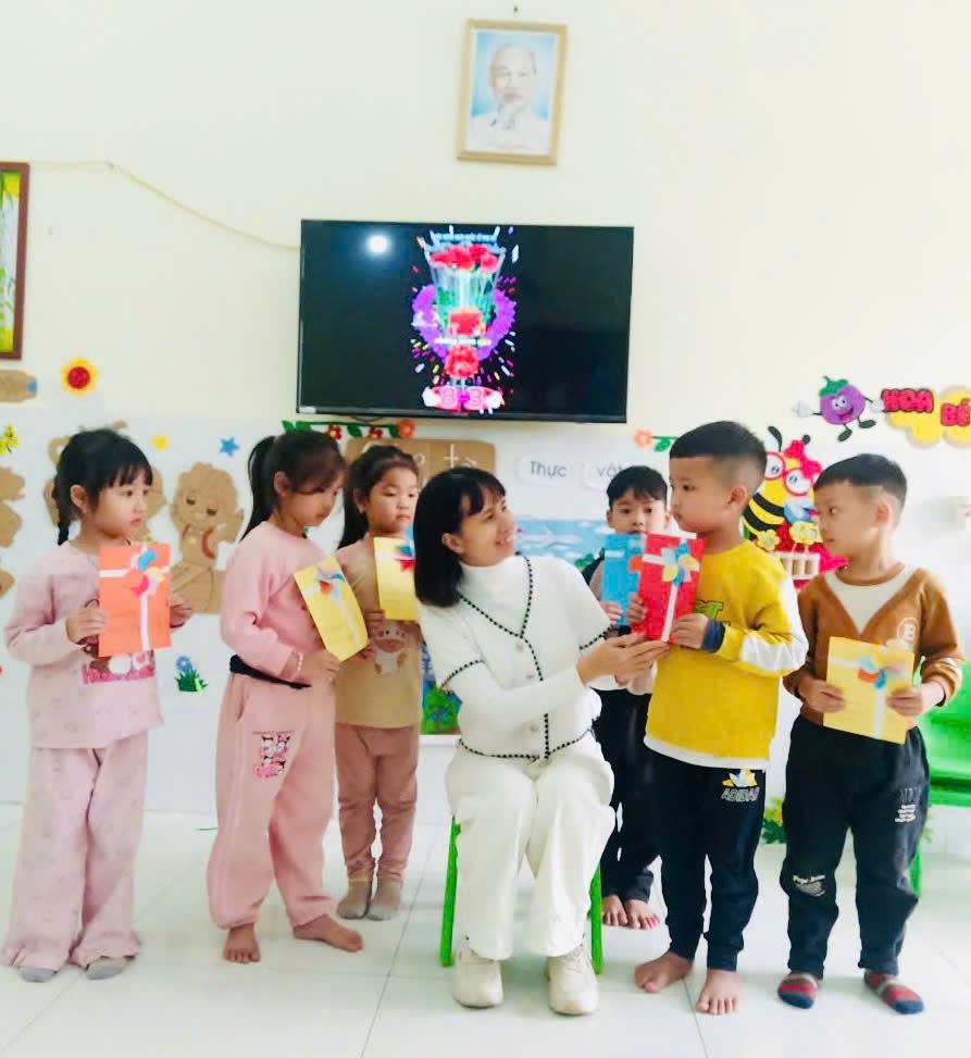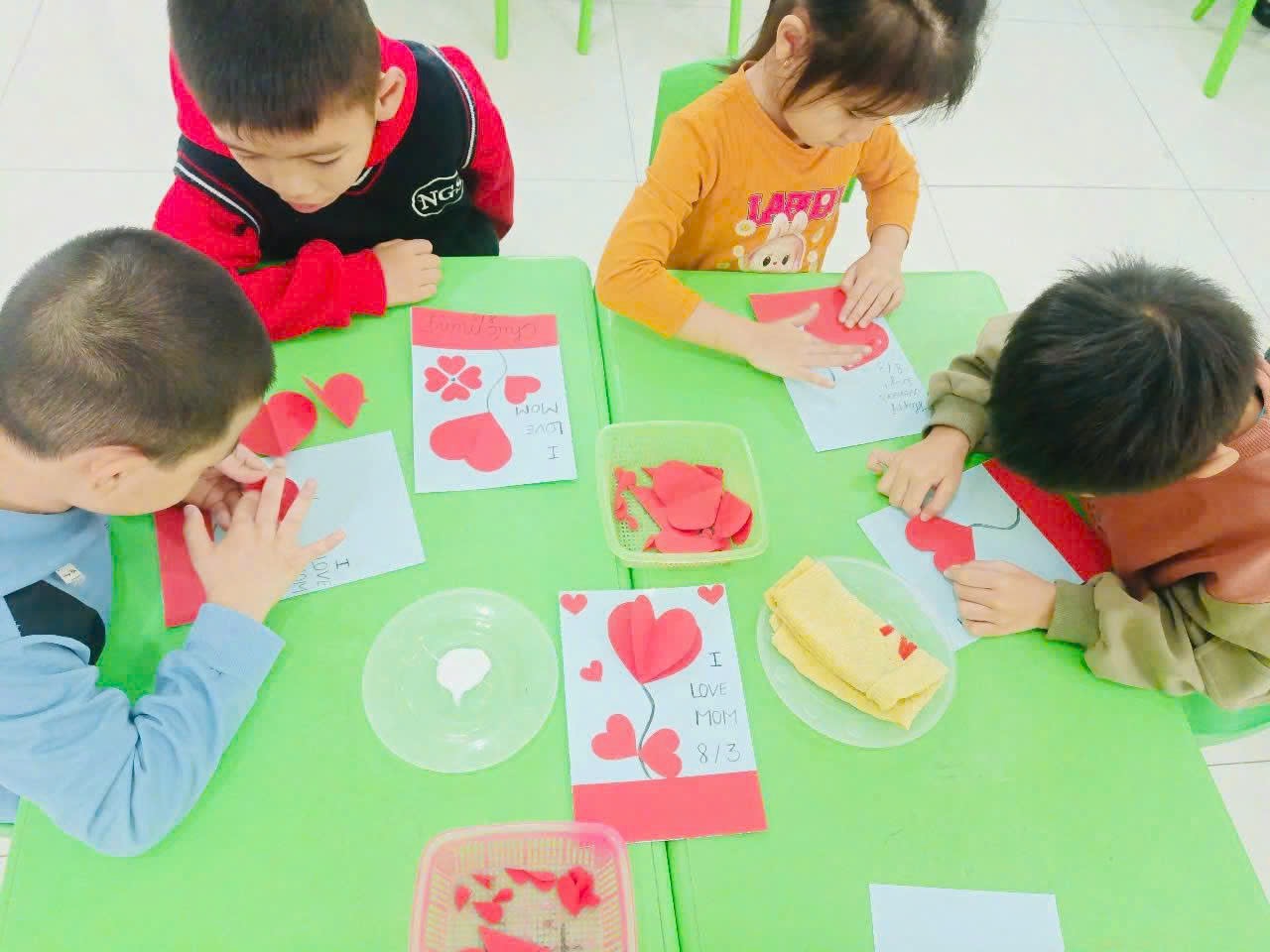 Cùng các bạn nhỏ lớp 5 Tuổi A làm thiệp dành tặng cho những người phụ nữ thân yêu của mình nhé /-rose /-rose /-rose . ♥️Dù còn vụng về, nhưng thiệp hoa do chính tay các bạn nhỏ góp phần tạo nên chắc hẳn sẽ là món quà tinh thần đáng yêu dành tặng bà, mẹ thân yêu nhân dịp 8/3 này đấy ạ!!!❤️