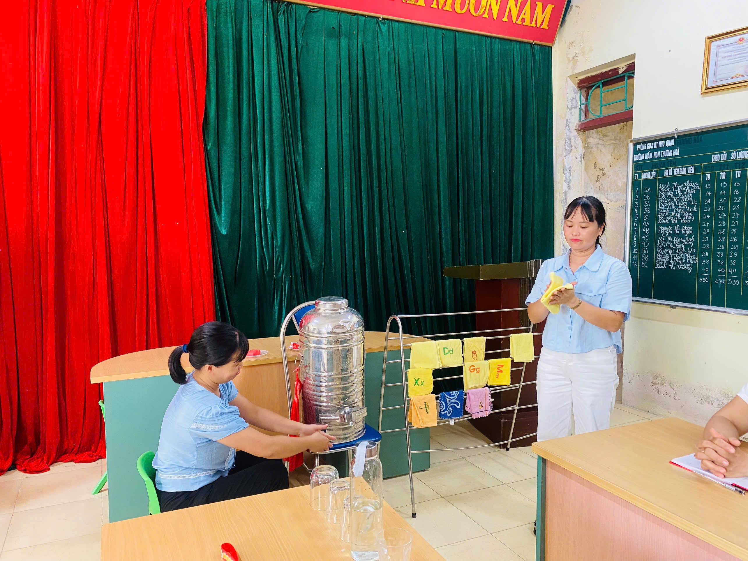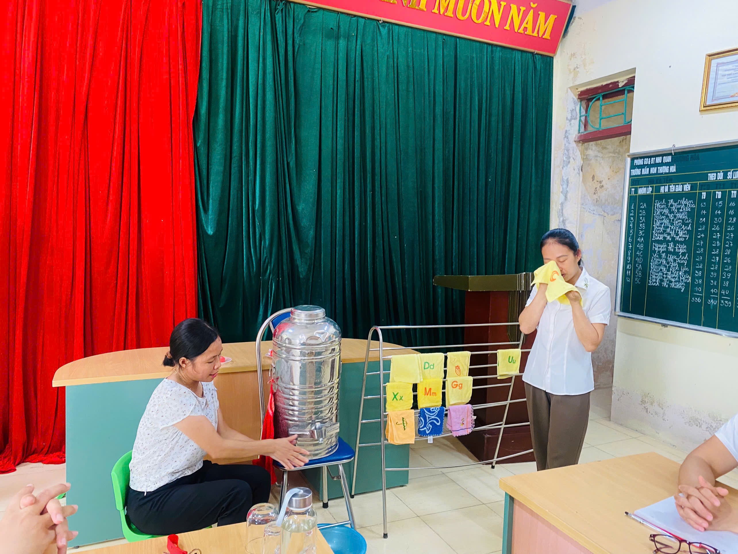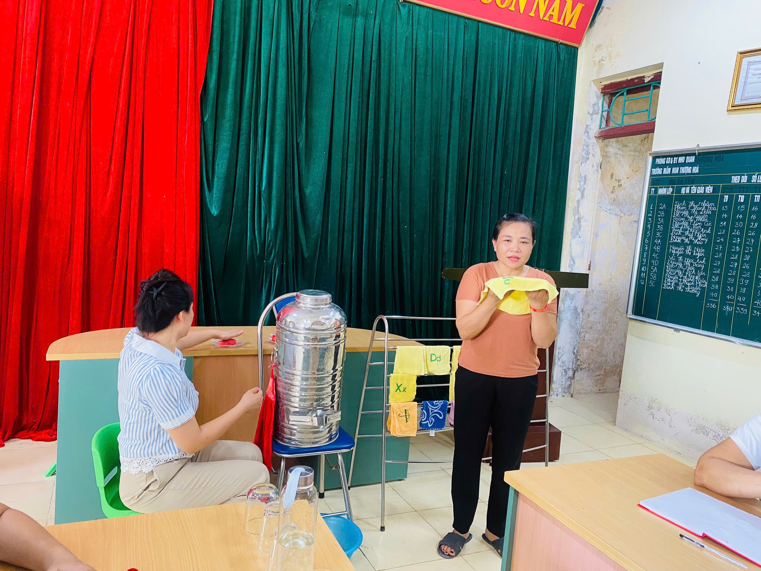 🌞Tại buổi chuyên đề, GVNV được trao đổi về lý thuyết, được dự và được thực hành các thao tác rửa mặt, rửa tay cho trẻ nhà trẻ và trẻ mẫu giáo. Được thảo luận và rút kinh nghiệm sau khi dự chuyên đề.